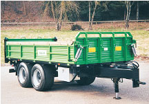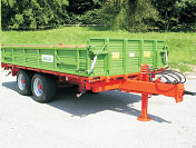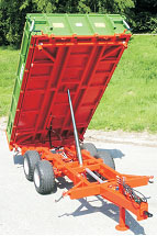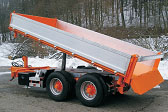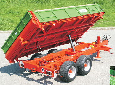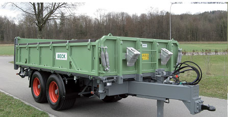 Sasiu cu tuburi profilate goale St 52; punte din Hardox de 5 mm dintr-o piesa fara nervuri; BECK TT 4,4 suspensiune; basculabila cu deschidere in trei parti cu cilindru telescopic din 5 sau 6 etaje, precum si cu un dispozitiv de oprire si